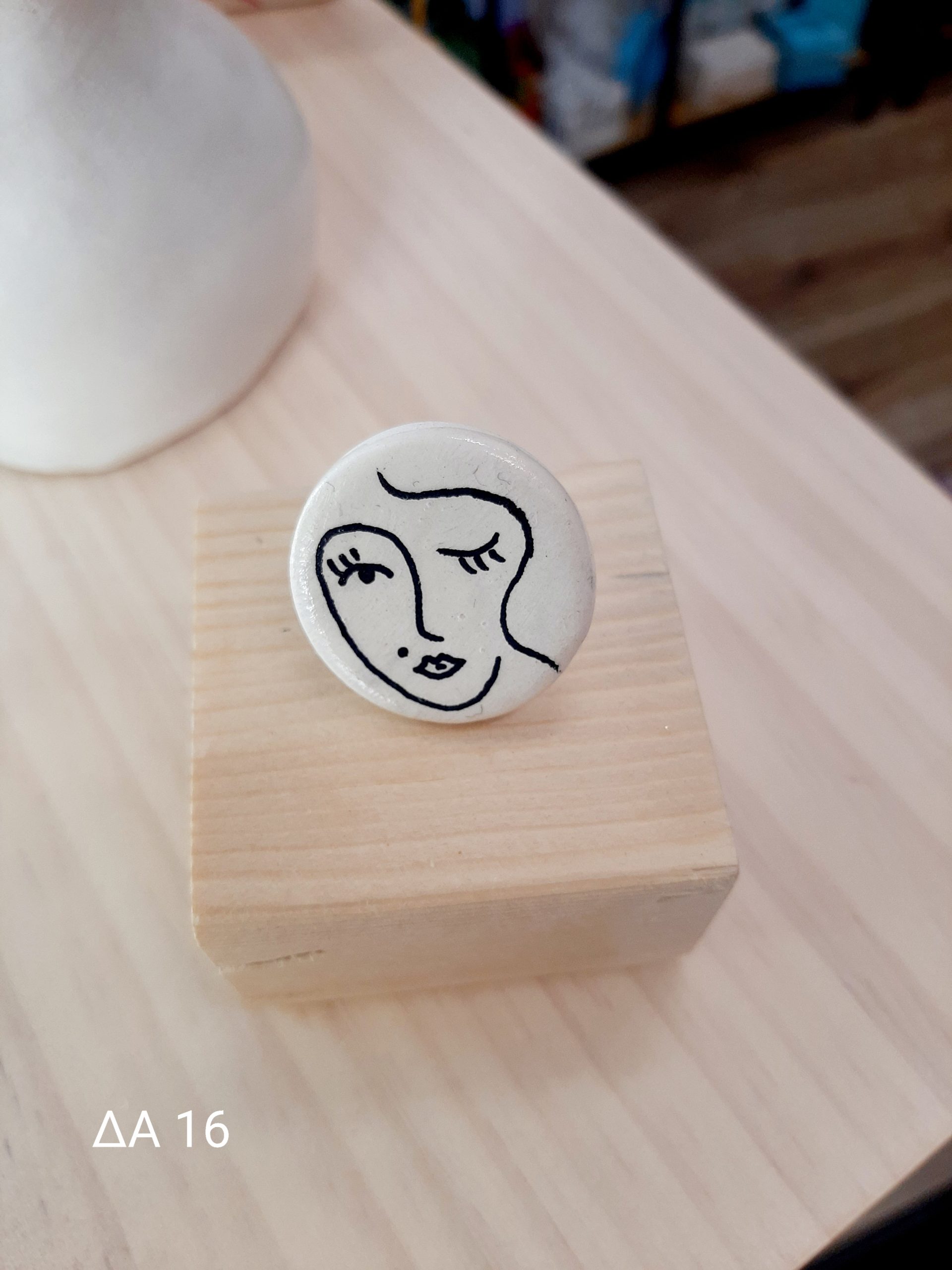 Κεραμικό δαχτυλίδι με ατσάλινη βάση, στρογγυλό ζωγραφισμένο στο χέρι με γυναικεία φιγούρα