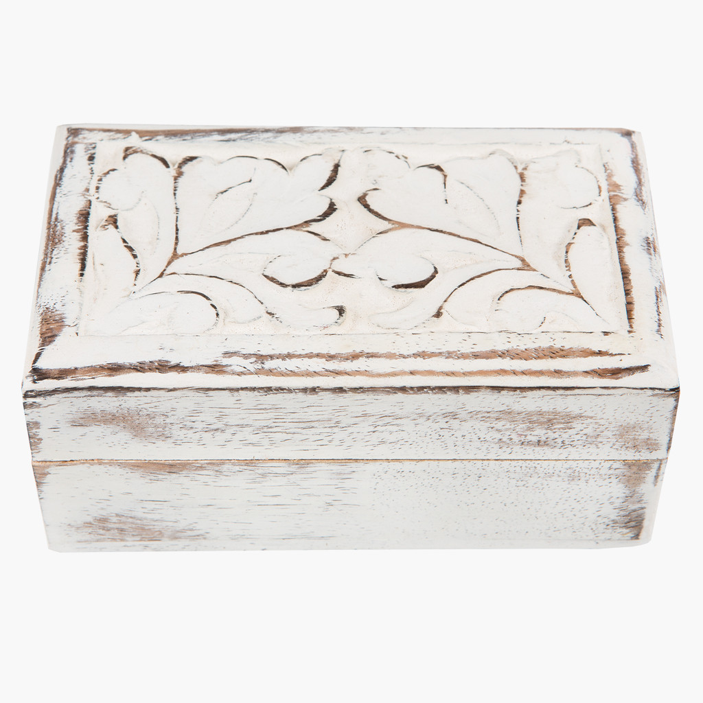 Χειροποίητο ξύλινο κουτί λευκό σκαλιστό (13*7.5*5.5 εκ.)