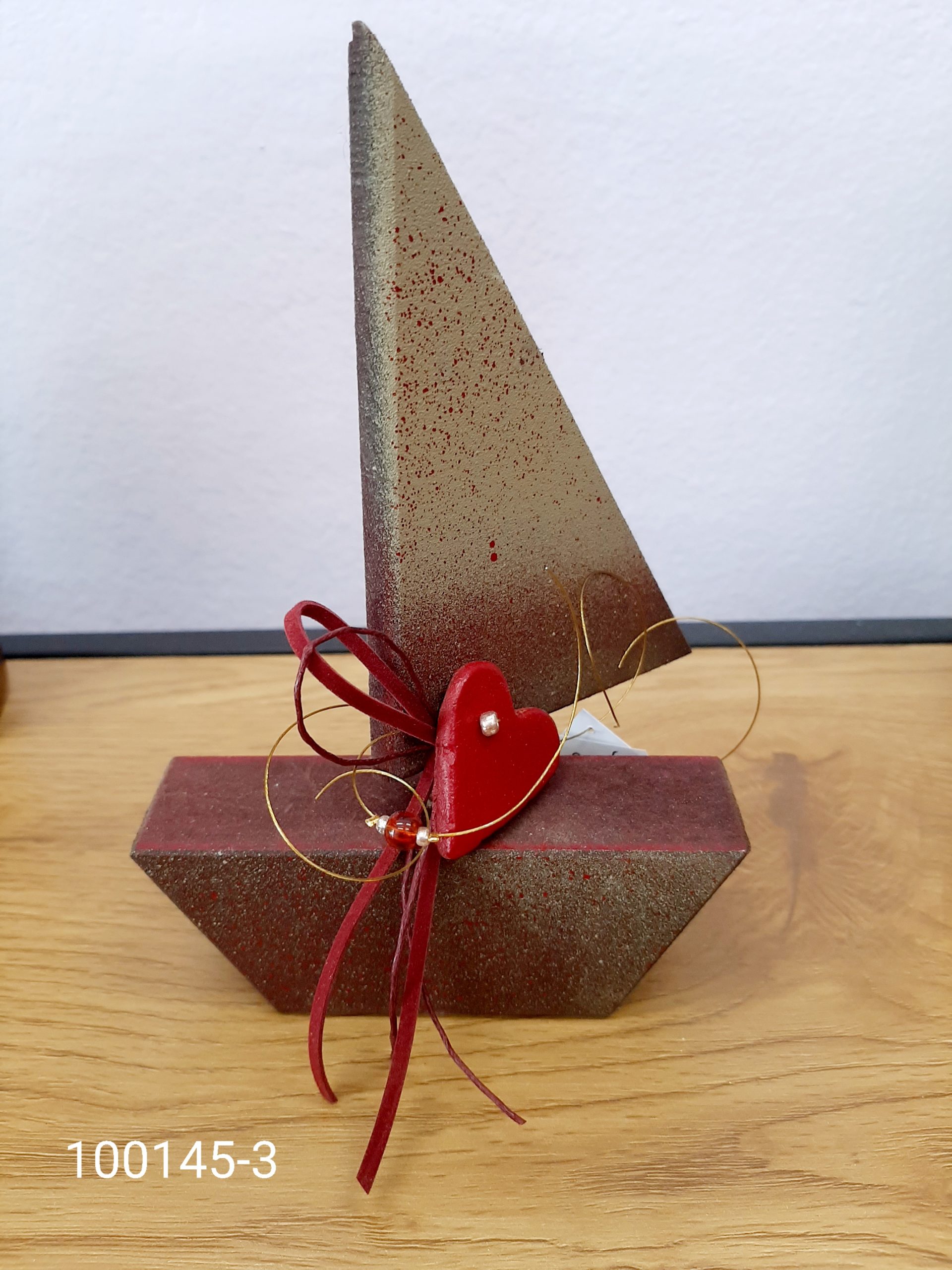 Ξύλινο καραβάκι με κεραμικές καρδιές μικρό
