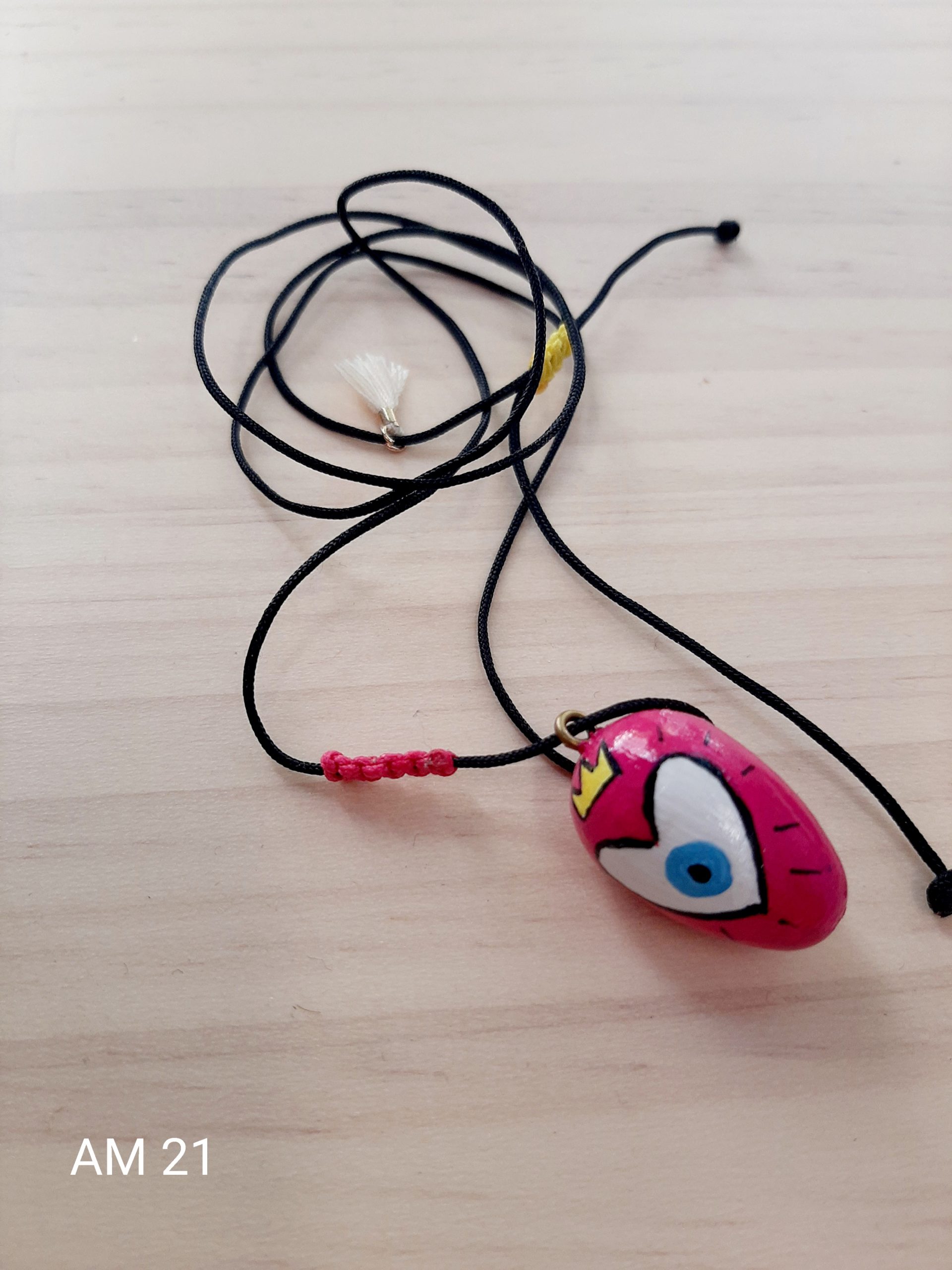 Ξύλινο μενταγιόν ροζ και καρδούλα με μάτι