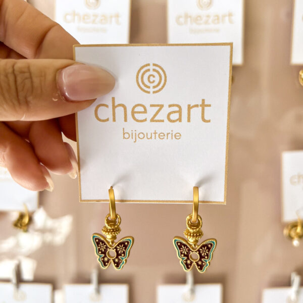 Σετ κρικάκια με ατσάλινη επιχρυσωμένη βάση και εκκρεμή στοιχεία πεταλούδας