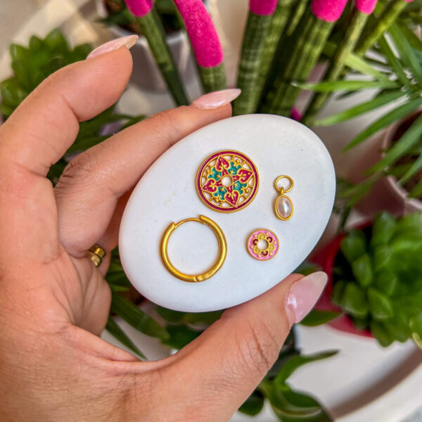 Σετ κρικάκια με ατσάλινη επιχρυσωμένη βάση και τριπλετα στοιχείων